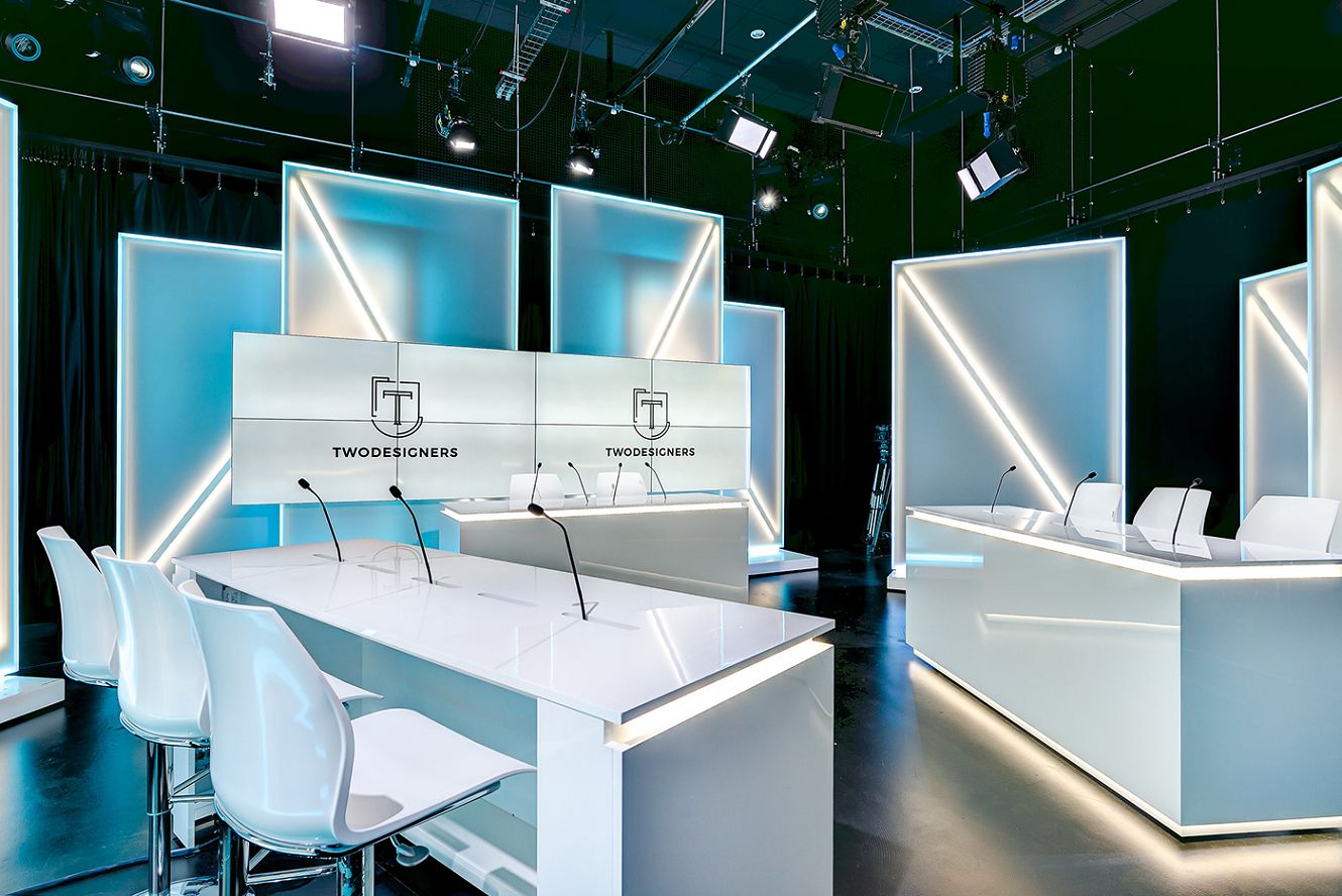 电视台空间设计策划:该连锁店有两个主要要求:首先是提升空间,使其与现代和动态的形象相匹配。然后,认为它完全灵活,便于日常使用,并使其适应所有情况。