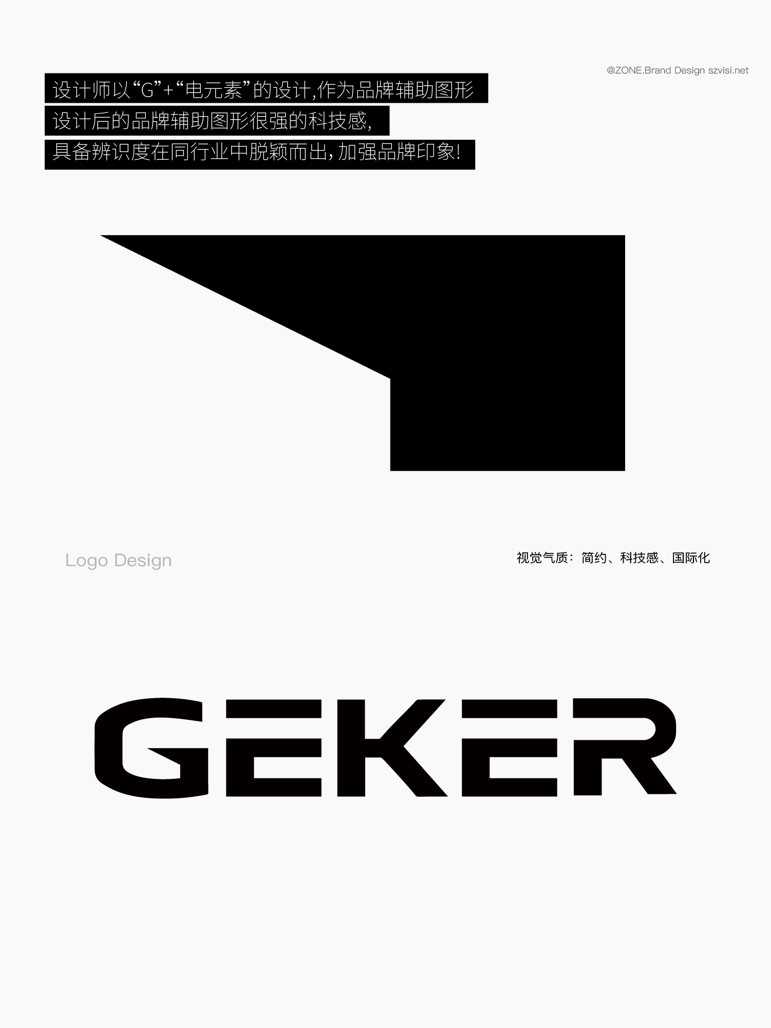设计是希望挚客的品牌形象在呈现智能家居产品行业属性下,塑造出高端现代生活印象!geker智客家电设计师以“G”+“电元素”的设计,作为品牌辅助图形,设计后的品牌辅助图形很强的科技感,具备辨识度在同行业中脱颖而出,加强品牌印象!